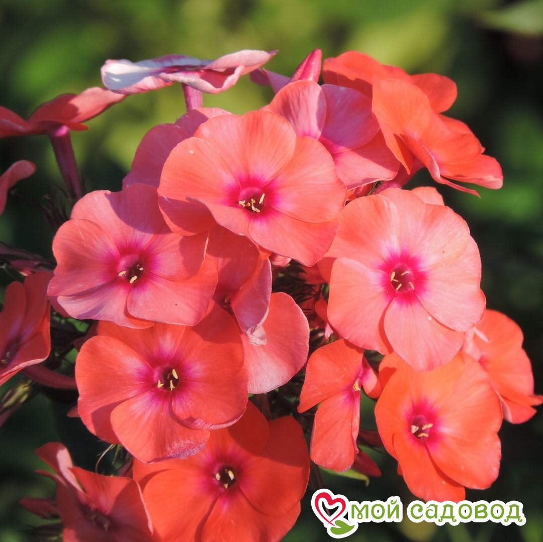 Душистые гроздья соцветий лососево-оранжевого цвета с маленькой бордовой серединкой полностью соответствуют своему названию Оранж Перфекшен – солнечно-оранжевое совершенство. Несомненно, эти яркие цветы, благодаря контрасту с зеленью листьев, привлекут к себе внимание и станут ярким украшением в любом саду. Orange Perfection цветет довольно продолжительно в июле-августе. Купить саженцы флокса Оранж Перфекшен стоит для оформления миксбордеров и цветников, сорт великолепно смотрится рядом с монардами, тысячелистниками, дельфиниумами, лилейниками. Сорт неприхотлив и морозостоек, на зиму побеги обрезают на высоту 10 см. Как выглядит растение? Куст прямостоячий, густо облиственный, высотой до 100 см. Растение способно стремительно разрастаться. Побеги прочные, но под весом раскрывающихся соцветий слегка поникают. Цветение начинается в конце июля — первой половине августа. Окраска бутонов необычная – пурпурно-коричневая. Распустившиеся цветки белоснежные, а трубка розового цвета. Вместе они образуют крупное соцветие пирамидальной формы. Применение в ландшафтном дизайне Сорт выращивают на втором плане клумб и миксбордеров. Многолетник хорошо сочетается с лилиями, лилейниками и древовидными пионами с темной окраской лепестков. Флористы добавляют цветок в букетные композиции. Советы по посадке и выращиванию Для растения подходит как солнечно, так и слега затененное место. Жизнь хрупких цветков можно продлить, если обеспечить им защиту от резких порывов ветра. Декоративные качества многолетника раскрываются лучшим образом в плодородной, рыхлой и умеренно влажной земле. При посадке важно, чтобы почки находились на 2 см ниже уровня поверхности грунта. Лунки готовят размером 30 х 30 см. Внутрь насыпают компост, торф и песок. В слишком легкую почву добавляют глину – она поможет удерживать влагу. Корни саженца расправляют и засыпают почвосмесью. Купить недорого флоксы можно в интернет-магазине «Мой садовод». Просто отправьте понравившийся сорт в корзину, нажав на соответствующую кнопку. Мы бережно упакуем и максимально быстро доставим Вашу покупку ТК СДЭК или почтой России. Если возникнут вопросы или сложности с оформлением заказа, наши консультанты предоставят квалифицированную помощь. Мы гарантируем высокое качество посадочного материала и дорожим мнением каждого покупателя!