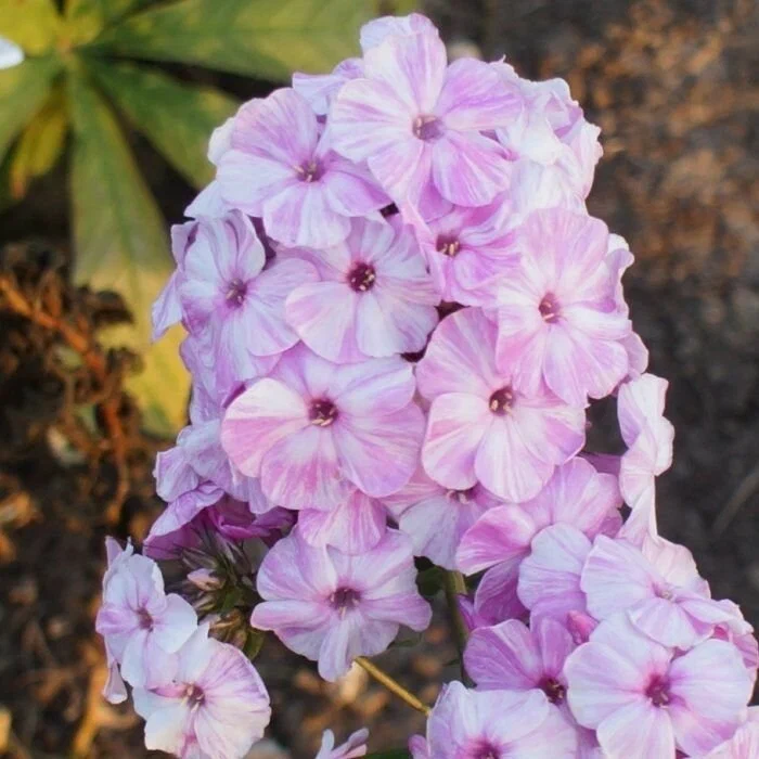 Цветы имеют необычный окрас с нежными бело-розовыми мазками. Диаметр цветка до 4 см. Высота флокса – 45-55 см. Цветение июль-август.